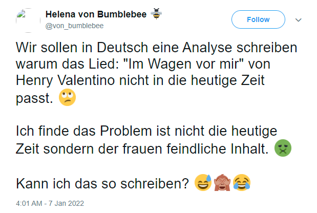 Das Pflegekind Helena soll schließlich im Deutschunterricht alte deutsche Schlager erörtern: