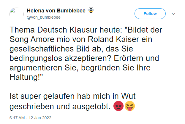 „Im Wagen vor mir“ wurde 1977 veröffentlicht, „Amore Mio“ im Jahr 1978. Anfragen an diversen Schulen - u.a. einer inklusiven Schule in Hamburg - ergaben übrigens, dass Thematiken wie die Interpretation alter Schlager nicht Bestandteil des heutigen Unterrichts sind.